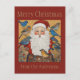 Cute rich red Santa Claus Bluebirds - art deco whimsical Christmas illustration.