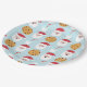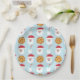 This fun Christmas paper plate features Santa with milk and cookies on a blue background.