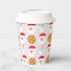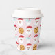 This adorable paper cup features Santa with his milk and cookies on a pink background.