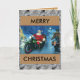 Santa riding a motorcycle through a winter wonderland. waving and wishing everyone a MERRY CHRISTMAS!