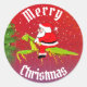 Funny Christmas stickers feature Santa Claus Riding a large green praying mantis and the words "Merry Christmas" . The primary colours are red, white and green. If you like unique holiday stickers, these are for you!