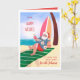 Original illustration of Santa on the Beach with tropical drink leaning on a surfboard; optional photo on the inside (colours inside editable). ©Becky Nimoy 2021