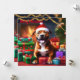 This image highlights the holiday spirit with the Staffy in a Santa hat, surrounded by presents and Christmas decorations, ready to spread some "paw-some" cheer.