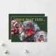 Minimal and modern holiday photo template card featuring 3 photos of your pup on the front with a fun typography text that says "santa paws came." You can also add another picture and message on the back. The background is green.
