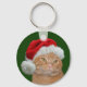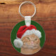 Orange tabby cat in a Santa hat photo Christmas keychain