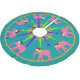 Pink elephants with Santa Claus hats marching in a circle around a circus themed Christmas tree skirt.
