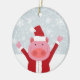 Illustration of a pig wearing a Santa outfit with "Merry Christmas" greeting on the back
