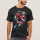 I give wanted to give this a 4 instead of a 5 because these Basic DARK T0shirts run unexpectedly SLIM or Narrow. Which is great if you do not have a potbelly, but I have a paunch. It isn't the shirt's fault that I've got a beer belly. The design and shirt itself is a quality cotton shirt. The color is more of a deep purple, but still a very pretty color. The Basic DARK T-shirts run a bit SLIMMER than the Basic Ts. The neck is a fraction narrower (or seems to be narrower) also. I'm a paunchy middle-aged woman and my neck is 12 inches (31cm) thick and the neckline fell about the same as in the photo of the man, and I had the desire to tug it a bit. So if you're a thick necked man or like loose shirts, be aware these are slimmer shirts. Once I get rid of my lockdown paunch it'll look great. The shirt washed well in cold water with no apparent bleeding. We don't have a dryer, so it hung dry. Did not shrink. Love the colors and the design. The design looks smaller on my shirt than it does on the model on-line. But still, it looks good on the shirt. The printing looks as it does on the model, just the size seems fractionally smaller. Washed garment in cold water, hung dry and design appeared unaffected.