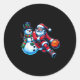 Santa Playing Basketball With A Snowman Christmas Classic Round Sticker