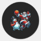 Santa Playing Basketball With A Snowman Christmas Classic Round Sticker