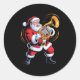 Santa Playing French Horn Funny Holiday Chrismas X Classic Round Sticker