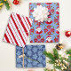 This fun trio of designs features classic retro hand drawn designs that include Santa Claus, red and blue poinsettias, and a fun messy peppermint stripe.