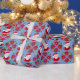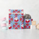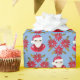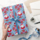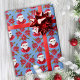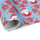 Santa Poinsettia Traditional Blue Red Christmas Wrapping Paper