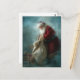 Santa postcard in a painting design. Father Christmas packing his bag of gifts.