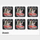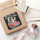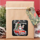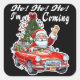 This sticker features Santa Claus driving a classic red convertible car loaded with a decorated Christmas tree and gifts. He is waving from the car, which is set against a solid black background. The text "Ho! Ho! Ho! I'm Coming" is prominently displayed. The design may look real due to the high detail and three-dimensional texture in the artwork.