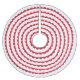 A modern scallop pattern in cheerful holiday reds accent this white tree skirt for a modern and fun look under the Christmas tree.