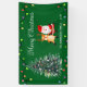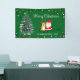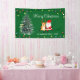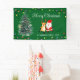 Elegant Christmas banner features a cute Santa with reindeer and Christmas tree, surrounded by colourful string lights on a green background. Personalise it with your name.