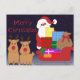 The Santa & Reindeer Postcard makes a great way to send holiday greetings! The retro design features Santa with two reindeer, along with his sleigh filled with packages. The text reads, "Merry Christmas." Customise the text as desired.