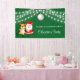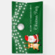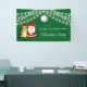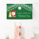 Elegant Christmas banner features string lights, Christmas ball, Santa and Christmas reindeer on a green background. Personalise it with your name.