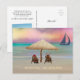 Original illustration of Santa and reindeer on a tropical beach relaxing and watching the sunset. ©Becky Nimoy 2021 Photo option and message on the back. ©Becky Nimoy 2021