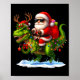 Santa Riding Dinosaur T Rex Christmas Boys Men Xma Poster