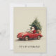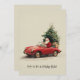 A cheerful watercolor-style illustration of Santa Claus driving a classic red convertible, carrying a lush Christmas tree and gift bags. This festive design blends vintage charm with holiday magic, perfect for Christmas cards, mugs, posters, or seasonal décor. Bring a touch of joy and nostalgia to your holiday celebrations with this whimsical artwork!