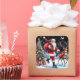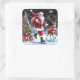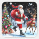 Santa Claus joyfully skates on ice alongside a friendly reindeer. In the background, a beautifully lit Christmas tree displays colourful ornaments, while wrapped presents sit nearby, celebrating the festive spirit of the season.