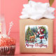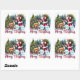 Santa Skating With Reindeer by Trees Square Sticker