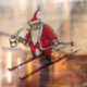 Santa Skiing window clings are fun Christmas decorations for skiers, ski lodges, coffee drinkers, coffee shops and other businesses in ski areas, cartoon fans, and people who like to spread good cheer during the holiday season. Santa Skiing is Steamy Raimon original cartoon art.
