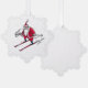 Santa Skiing paper ornaments are fun Christmas decorations or gift tags for people spreading good cheer at Christmas time, skiers, coffee drinkers, hot chocolate drinkers, ski lodges and restaurants, and cartoon fans. Santa Skiing is Steamy Raimon original cartoon art.
