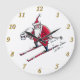 Santa Skiing wall clocks add to the fun at Christmas time. Santa Skiing is Steamy Raimon original cartoon art.