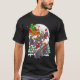 I give wanted to give this a 4 instead of a 5 because these Basic DARK T0shirts run unexpectedly SLIM or Narrow. Which is great if you do not have a potbelly, but I have a paunch. It isn't the shirt's fault that I've got a beer belly. The design and shirt itself is a quality cotton shirt. The color is more of a deep purple, but still a very pretty color. The Basic DARK T-shirts run a bit SLIMMER than the Basic Ts. The neck is a fraction narrower (or seems to be narrower) also. I'm a paunchy middle-aged woman and my neck is 12 inches (31cm) thick and the neckline fell about the same as in the photo of the man, and I had the desire to tug it a bit. So if you're a thick necked man or like loose shirts, be aware these are slimmer shirts. Once I get rid of my lockdown paunch it'll look great. The shirt washed well in cold water with no apparent bleeding. We don't have a dryer, so it hung dry. Did not shrink. Love the colors and the design. The design looks smaller on my shirt than it does on the model on-line. But still, it looks good on the shirt. The printing looks as it does on the model, just the size seems fractionally smaller. Washed garment in cold water, hung dry and design appeared unaffected.