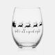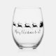 Santa Sleigh Reindeer Christmas Design Stemless Wine Glass with customisable text.