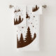 Santa Sleigh Reindeer Flying Over Treetops Brown Bath Towel Set