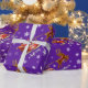Santa & Sleigh Wrapping paper.Glossy purple giftwrap.