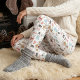 This leggings design has whimsical Christmas elements like Snowmen, reindeer and Santas with 'Ho, Ho, Ho', 'Hello' and 'Joy' messages in a random pattern. A modern, pastel colour palette adds to the allure but be sure to try different background colours to suit your preferences. Search ID559 to see other products with this design.