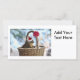 Photo of a squirrel wearing a Santa hat sitting in a basket with snow all around. The basket has a bright red Christmas bow. This cute squirrel picture is a fun way to celebrate the holiday season and can be easily customised with your own text on many different products for Christmas.