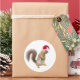 A cute Santa squirrel holds a green wrapped Christmas present on these festive holiday stickers.