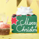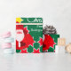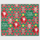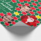 Fun bright Christmas family photos wrapping gift paper in green, red, white and yellow with festive Santa bearing gifts . Customise with your own two special family photos, family name or message. Currently reads Merry Christmas from the Rodríguez Family. Uniquely designed by Sarah Trett for www.mylittleeden.com on Zazzle.