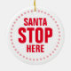 Santa Stop Here red and white cute funny Christmas Ceramic Ornament.