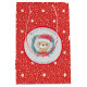 Santa Teddy Red and White Stars Merry Christmas Medium Gift Bag