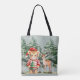 Santa Tiger and a Deer Pine Tree Christmas Tote Bag
