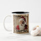 A wanted poster of a grizzly Santa Claus is on a mug.