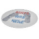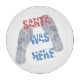 Santa Was Here pink and blue text and two in-toed footprints in the fresh snow. Funny Christmas Xmas prints, gifts and t-shirts for fun, humour and good mood