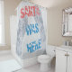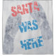 Santa Was Here pink and blue text and two in-toed footprints in the fresh snow. Funny Christmas Xmas prints, gifts and the shower curtain for fun, humour and good mood
