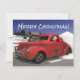 Santa Waving Driving Old 1941 Rusty Hotrod Coupe Holiday Card
