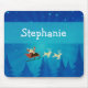 Cute and whimsical Santa Winter Scene Christmas Mousepad featuring Santa Claus and his reindeer passing through a wintry blue forest on a starry night. This fun Christmas mousepad will add holiday flair to your workspace! Easy to customise, simply add the personalised text of your choosing to this design. Click on the "Customise It" button to find more personalisation options.