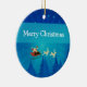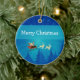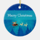 Cute and whimsical Santa Winter Scene Christmas Ornament featuring Santa Claus and his reindeer passing through a wintry blue forest on a starry night. This fun Christmas ornament adds holiday flair to any decor and would also make a cute gift. Easy to customise, simply add the personalised text of your choosing to this design. Click on the "Customise It" button to find more personalisation options.