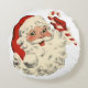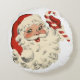 Vintage, jolly Santa holding a candy cane is featured on both sides of this round accent pillow. This 16" round pillow is made in the USA, use for holiday decorating or give as a gift for a Santa fan, December birthday or a new home owner too!