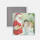 Vintage Christmas card image of Santa with children by a Christmas Trees.